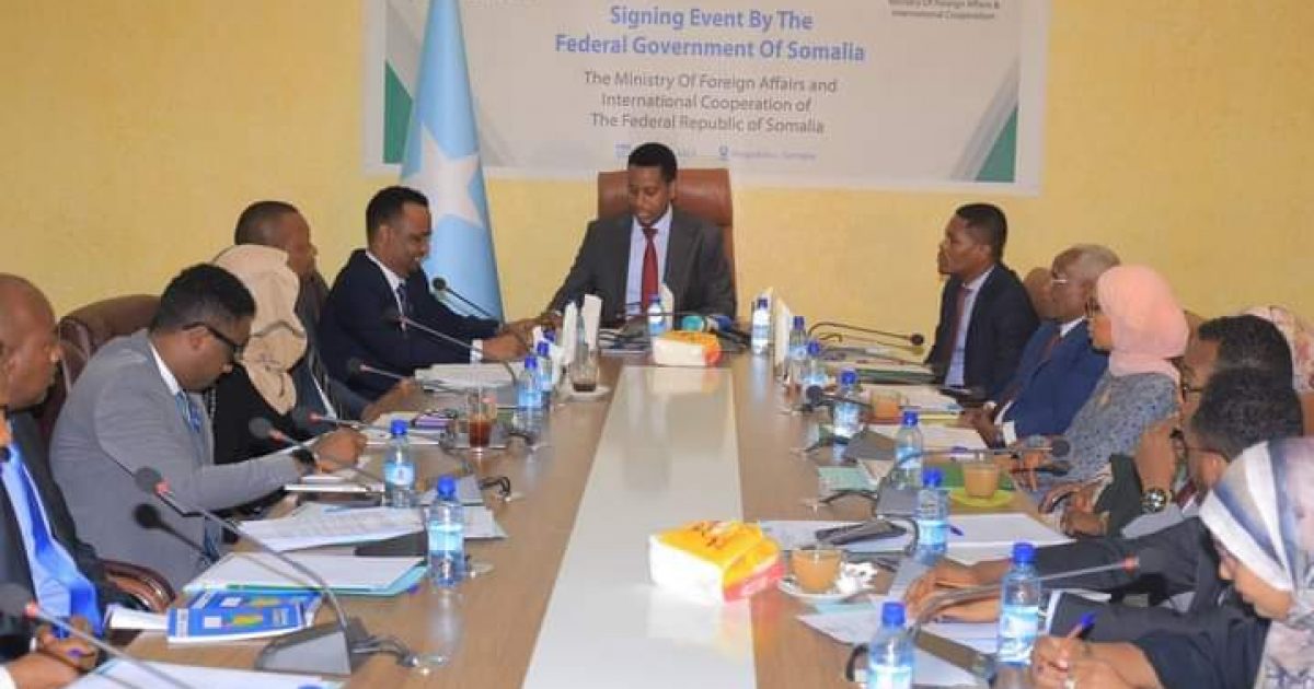 Wasiir ku-xigeenka Arrimaha Dibadda iyo Iskaashiga Caalamiga, Mudane Isaaq Maxamuud Mursal, ayaa maanta oo Axad ah si rasmi ah u saxiixay, hab-maamuuska dhaqdhaqaaqa xorta ah ee Dadka.