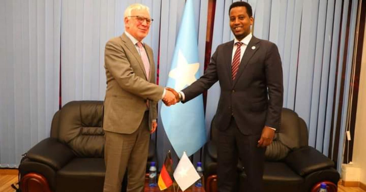 The Deputy Minister of Foreign Affairs and International Cooperation, H.E. Mr. Isaak Mohamud Mursal, received on Sunday in his office at the Ministry in the capital, Mogadishu, State Secretary at the Ministry of Economic Cooperation and Development of the Federal Republic of Germany, H.E. Mr. Jochen Flasbarth, and discussed with him the strengthening of bilateral relations and development cooperation.