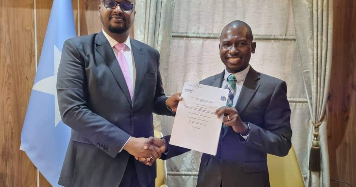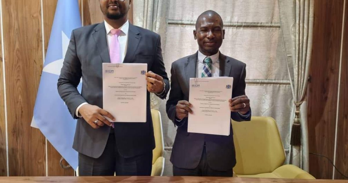 The agreement was signed in Mogadishu on April 2, 2023, by Hon. Ismail Abdirahman Sheikh Bashir, the federal minister for public works, reconstruction, and housing, and the IOM Chief of Mission, Mr. Frantz Celestin.