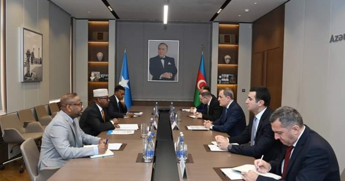 The Minister of Foreign Affairs and International Cooperation, H.E. Amb. Ahmed Moallim Fiqi Ahmed, met on Friday in Baku with the Minister of Foreign Affairs of the Republic of Azerbaijan, H.E. Mr. Jeyhun Bayramov, and discussed with him ways to fortify bilateral relations and enhance cooperation between the two brotherly nations.