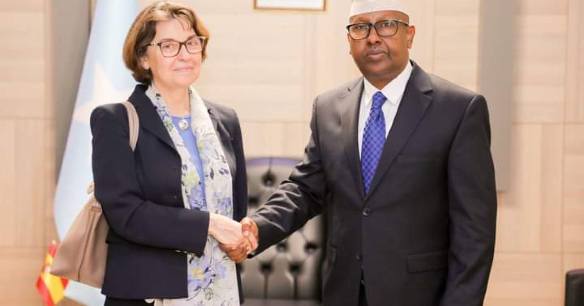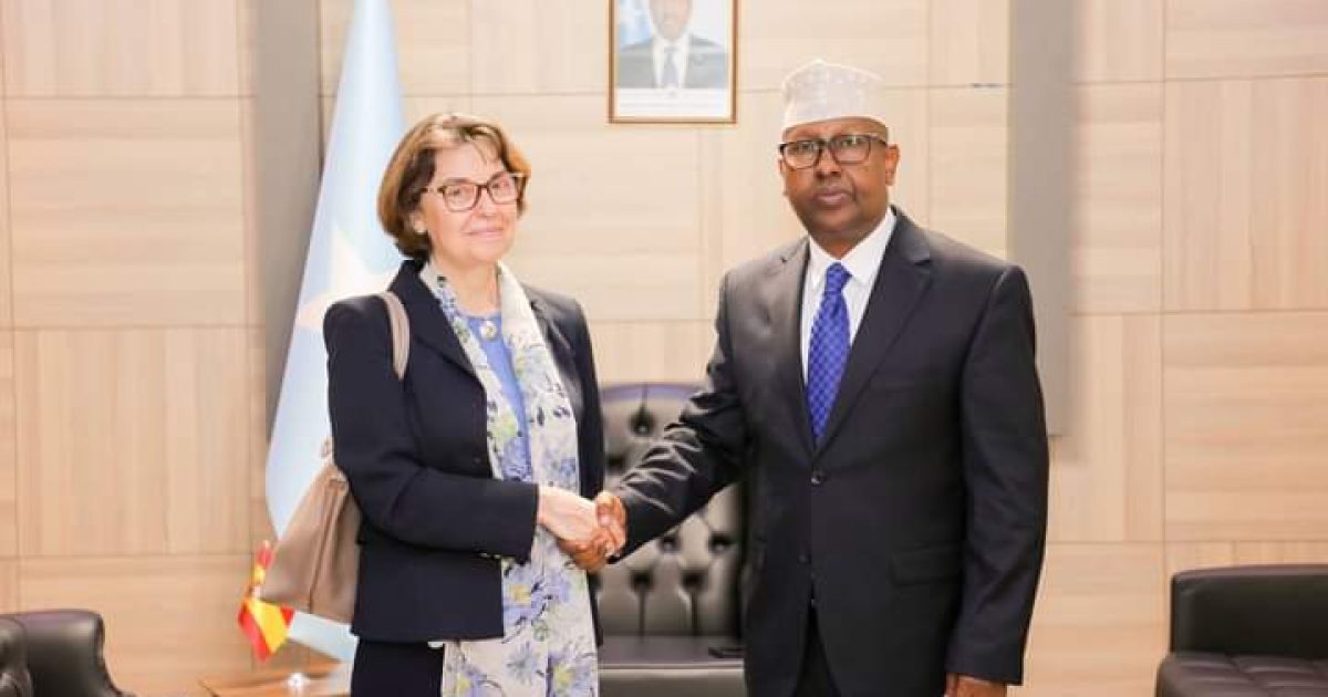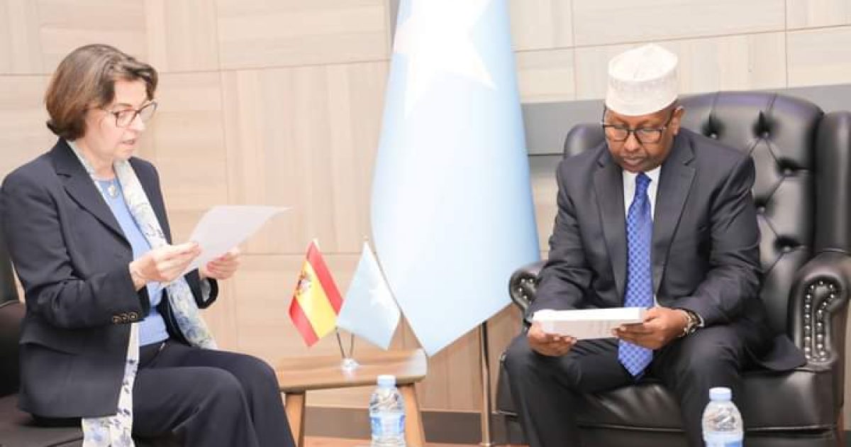 The Minister of Foreign Affairs and International Cooperation, H.E. Amb. Ahmed Moallim Fiqi Ahmed, received on Wednesday in his office at the Ministry in the capital, Mogadishu, a copy of the credentials of Ms. Cristina Díaz Fernández-Gil as the new Ambassador of the Kingdom of Spain to the Federal Republic of Somalia.