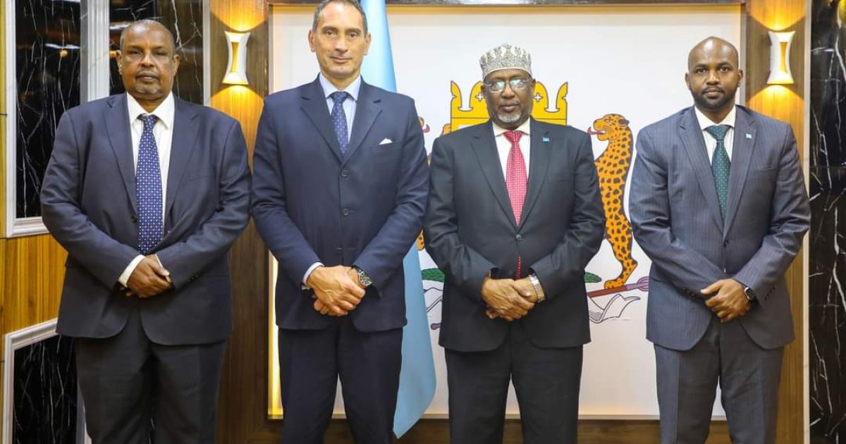 The Speaker of the Parliament of the Federal Republic of Somalia, H.E Sheikh Adan Mohamed Nur (Madobe) received in his office today the Ambassador of Italy to Somalia, Mr. Alberto Vecchi.