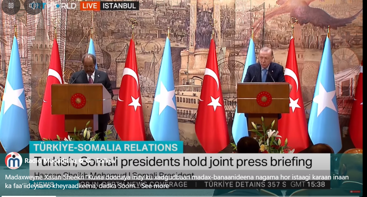 Madaxweyne Xasan Sheekh “Kuwa doonaya inay ku xadgudbaan madax-banaanideena nagama hor istaagi karaan inaan ka faa’iideysano kheyraadkeena, dadka Soomaaliyeed waxaan leeyahay, maalmihii wacnaa waa soo socdaan, waxaan u mahadcelinayaa Turkiga oo noqday walaalka xooggan ee Soomaaliya, qorshaha wadaagga kheyraadka dabiiciga ah ee Soomaaliya iyo Turkiga wuxuu abuuri doonaa horumar, amni iyo dib u dhis, iskaashiga labada dal ayaa gaaray heer istaraatiiji ah.”
