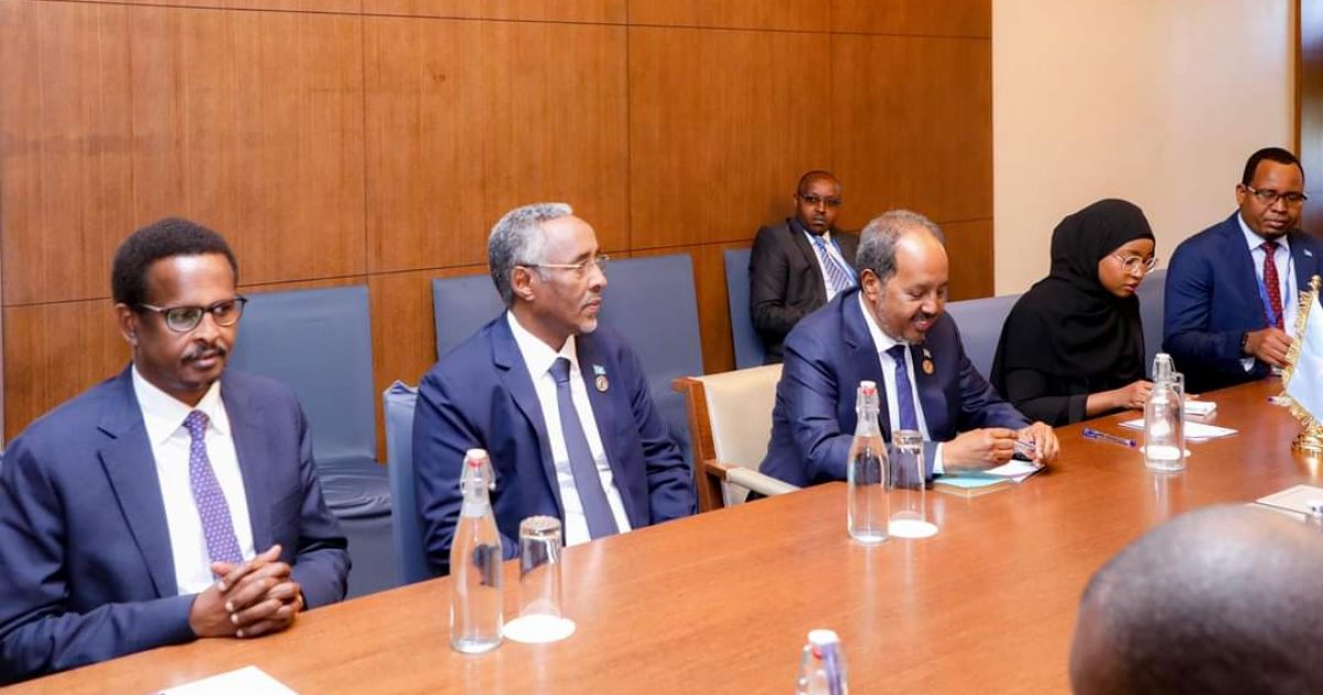 The President of the Federal Republic of Somalia, H.E Hassan Sheikh Mohamud met with the President of the Republic of Kenya, H.E William Samoei Ruto on the sidelines of the ordinary session of the African Union (AU) Summit in the capital city of Ethiopia.