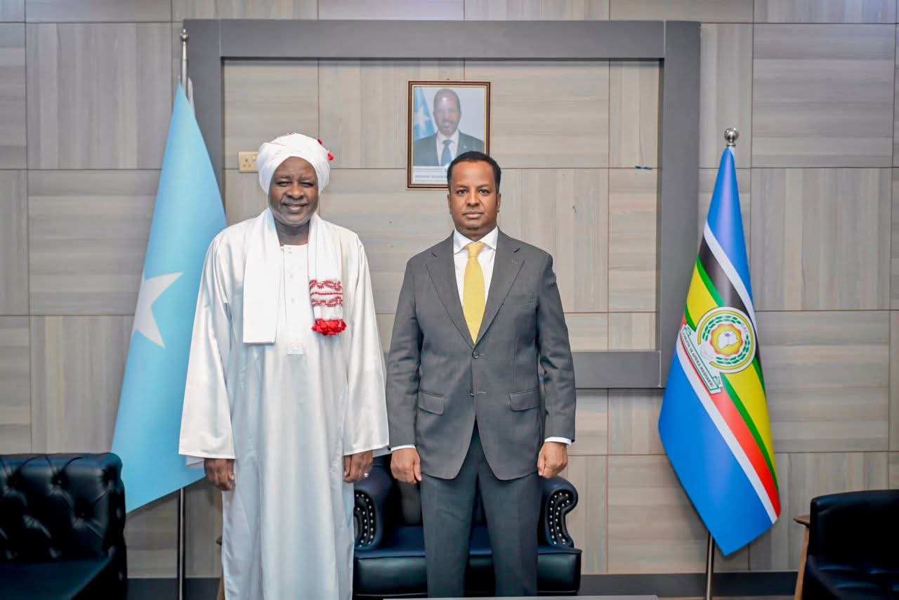 Somalia’s Minister of Foreign Affairs and International Cooperation, H.E. Abdisalam Ali , today received the Ambassador of the Republic of Sudan to Somalia, H.E. Abdularahman Khalil Ahmed Abubakar, who paid a visit at the Minister’s office in Mogadishu.