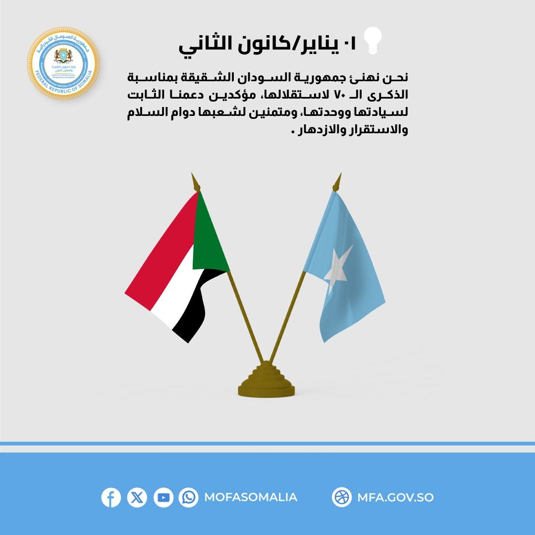 Somalia Congratulates Sudan on 70th Independence Anniversary