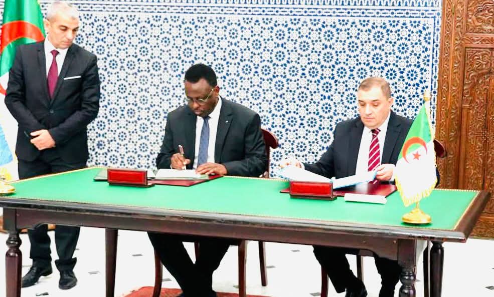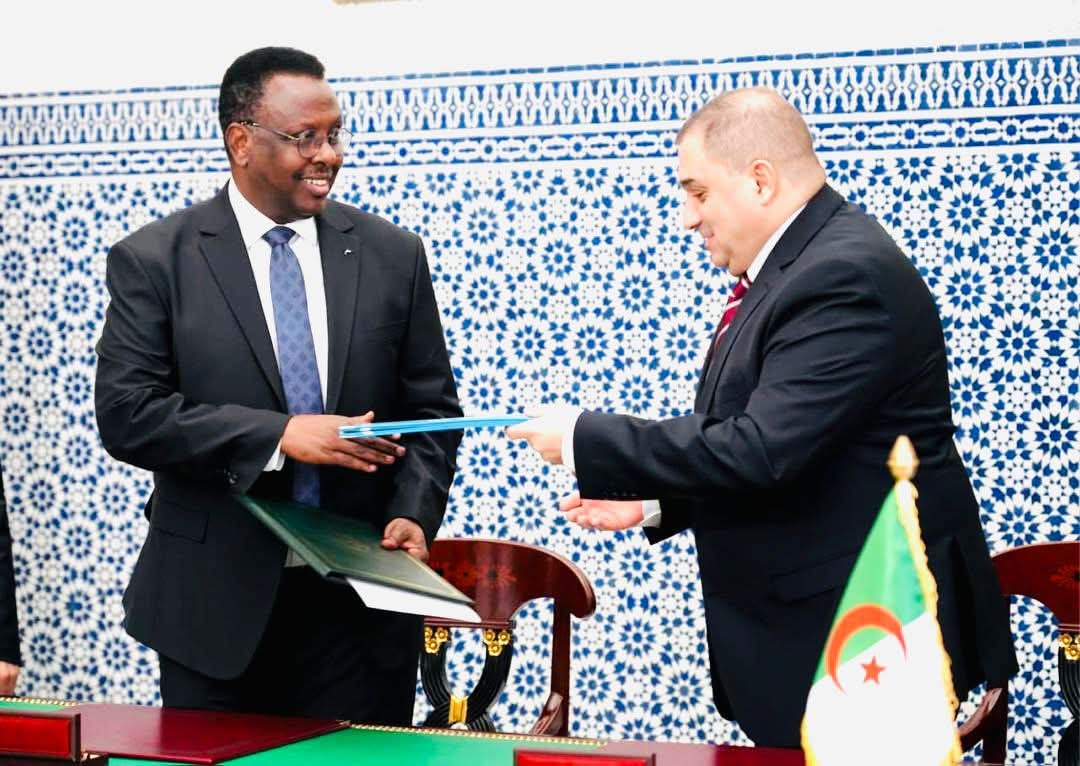 Wasiirka Cadaaladda iyo Arrimaha Dastuurka Xukuumadda JFS, Mudane Xasan Macallin Maxamuud, iyo Wasiirka Cadaaladda dowladda Aljeeriya, Mudane Lotfi Boudjemaa, ayaa magaalada Algiers ee dalka Aljeeriya ku kala saxiixday Heshiis Is-afgarad lagu xoojinayo iskaashiga dhinacyada garsoorka iyo caddaaladda labada dal.