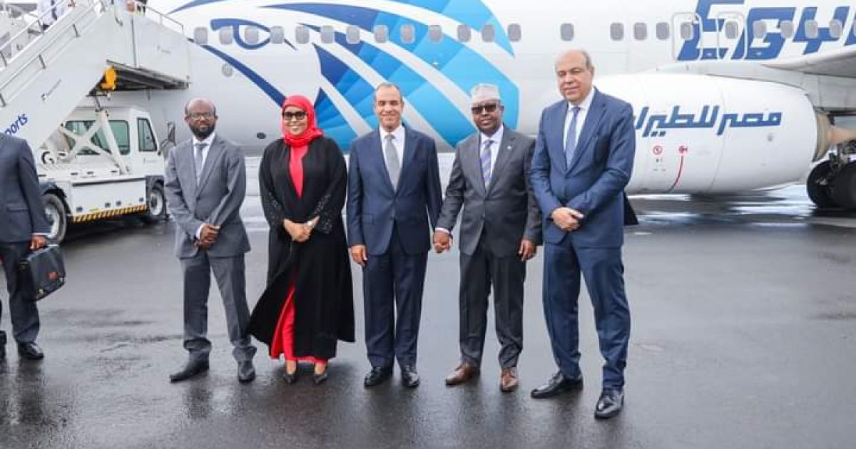 Wasiirka Arrimaha Dibadda iyo Iskaashiga Caalamiga, Mudane Danjire Axmed Macallin Fiqi Axmed, ayaa maanta oo Jimce ah ku soo dhoweeyay Muqdisho dhiggiisa Wasiirka Arrimaha Dibadda, Socdaalka iyo Jaaliyadaha ee Masar, Mudane Dr. Badr Abdelatty, si loo daah-furo si rasmi ah khad duulimaad toos ah oo u dhexeeya Soomaaliya iyo Masar, taasi oo tilmaan u ah bilashada waa cusub oo isgaarsiineed iyo iskaashi oo labada dal ee walaalaha ah yeeshaan.