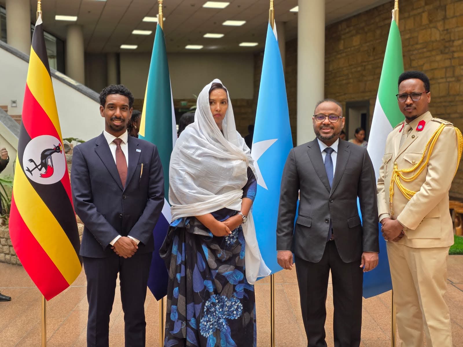 Safiirka Soomaaliya u fadhiya dalka Itoobiya iyo Midowga Afrika, Danjire Cabdullaahi Warfaa, ayaa si rasmi ah calanka Soomaaliya uga taagay xarunta Golaha Nabadda iyo Amniga Midowga Afrika, taas oo astaan u ah bilowga xilka cusub ee Soomaaliya.