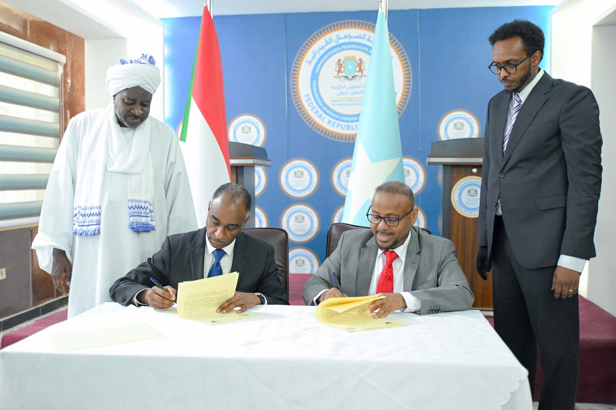 RADIO MUQDISHO:-Jamhuuriyadda Federaalka Soomaaliya iyo Jamhuuriyadda Suudaan ayaa kala saxiixday heshiis is-dhaafsi fiiso oo u gaar ah dadka haysta baasaboorrada diblomaasiyadeed, taas oo ah tallaabo muhiim ah oo lagu xoojinayo xiriirka laba geesoodka ah isla markaana lagu fududeynayo wada shaqeynta diblomaasiyadeed ee labada dal.