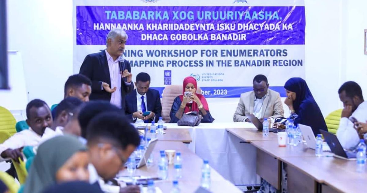 Ku – simaha Gudoomiyaha Gobolka Banaadir, ahna Gudoomiye ku-xigeenka Maamulka iyo Maaliyadda Gobolka Banaadir Mudane Ciise Maxamuud Guure oo uu wehliyo Wasiirka Wasaaradda Arrimaha Gudaha, Federaalka iyo Dib-u-heshiisiinta Xukuumadda Federaalka Soomaaliya Mudane Axmed Macallim Fiqi, ayaa furay tababar loogu tala – galay in lagu tayeeyo xirfadda aqooneed ee Xog Uruuriyaasha oo ku saabsan Hannaanka Khariidadeynta Isku Dhacyada ka dhaca Gobolka Banaadir.