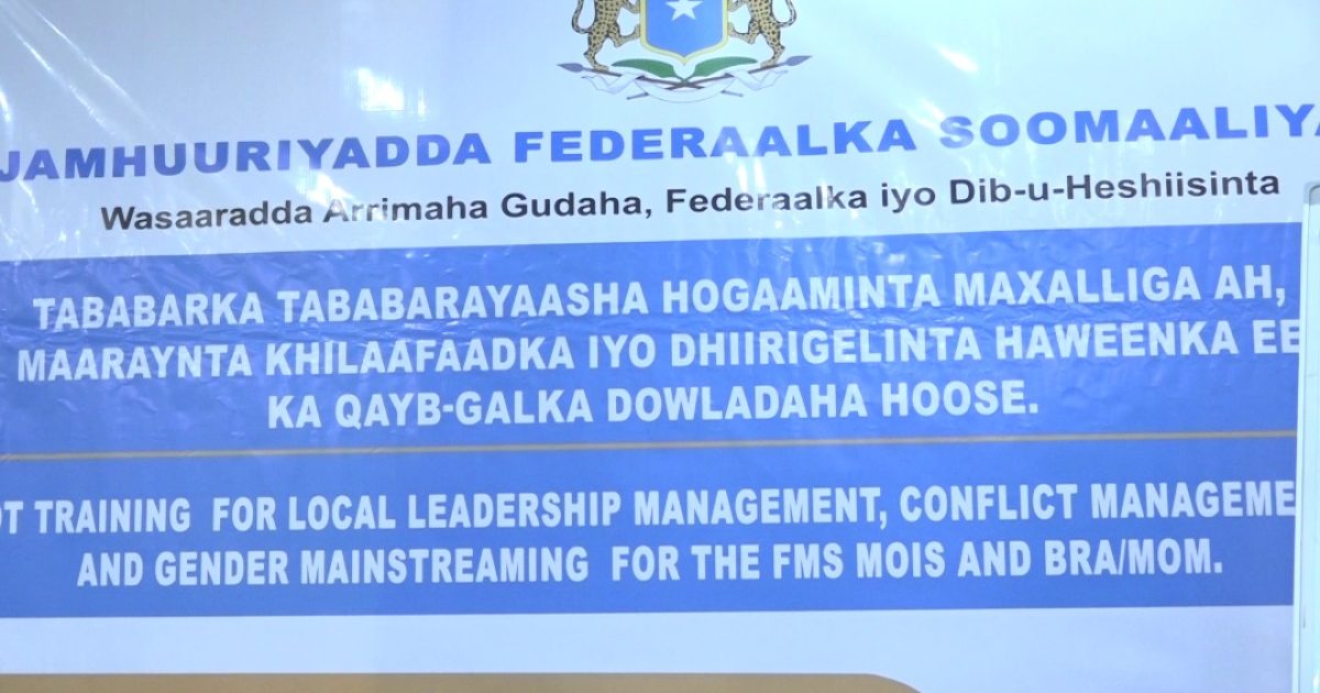 Agaasimaha guud ee Wasaaradda Arrimaha Gudaha Federaalka iyo Dib U Heshiisiinta Mudane Saciid Cabdulaahi Calsoow, ayaa maanta tababar u socday muddo labo todobaad ah u soo xiray tababarayaasha hoggaaminta Maxaliga, ee maareeynta khilaafadka iyo dhiirrigalinta hawenka, leh hanka ka kheybgalka Dowlahaha hoose, Waxaana ka Qeygalay tababaryaal iyo Mas’uuliyiin ka socday. dowlada heer Federaalka iyo heer Dowlad Goboleed xubnaha ka mid ah maamulka gobalka Banaadir.