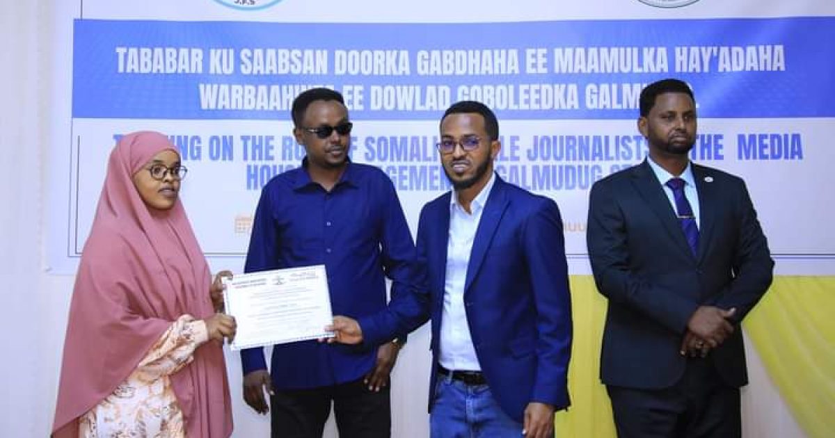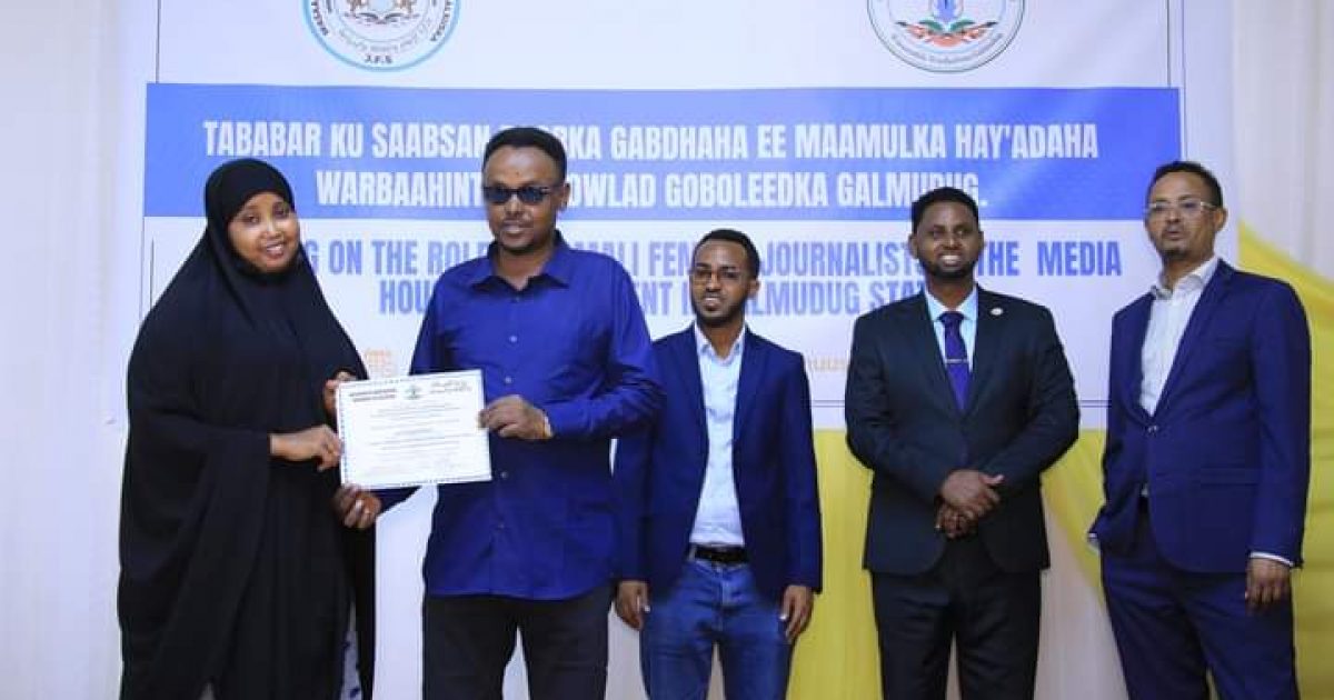 Cabdishakuur Cali Axmed oo ku hadlay magaca Wasaaradda Warfaafinta, Dhaqanka iyo Dalxiiska dowladda Federaalka ayaa ugu mahadceliyay Wasaaradda Warfaafinta Galmudug sida wacan ay u soo dhoweeyeen, uguna shaqeeyeen isku keenida gabdhaha suxufiyiinta ah ee ka kala yimid deegaannada Galmudug si ay uga faa’iidaystaan tababarka.