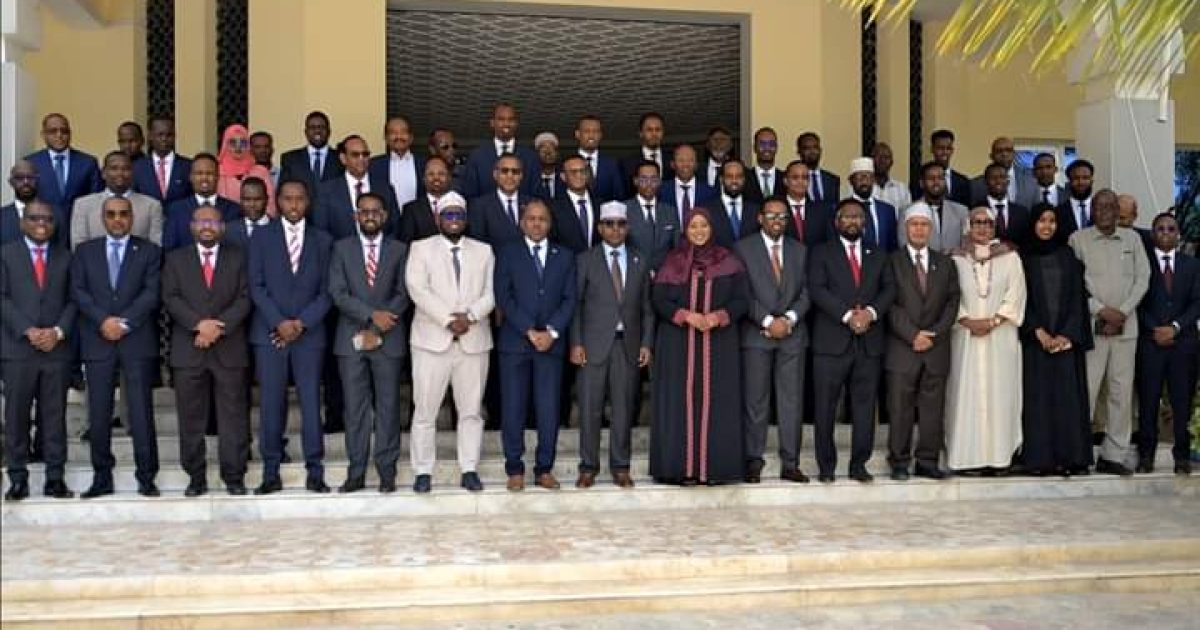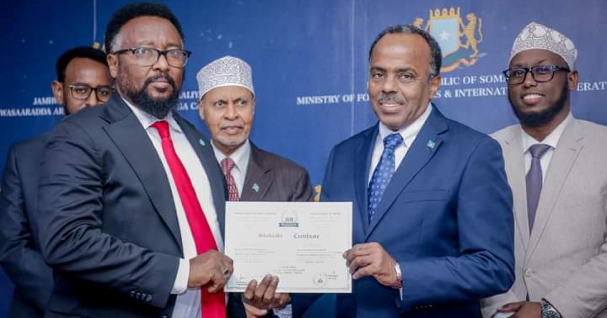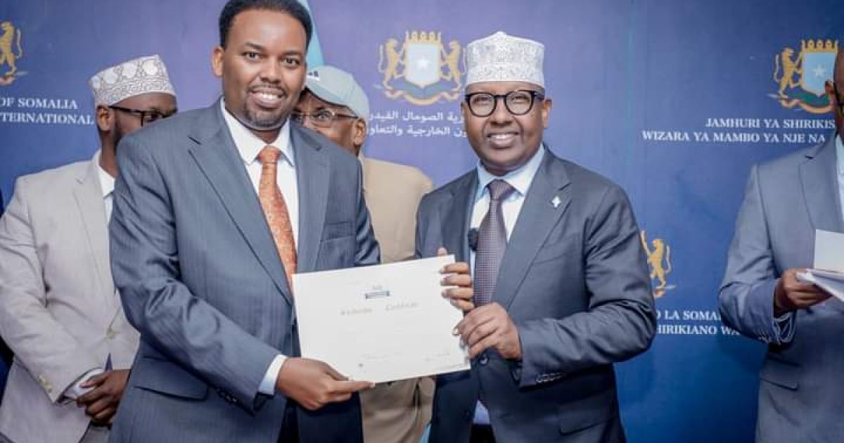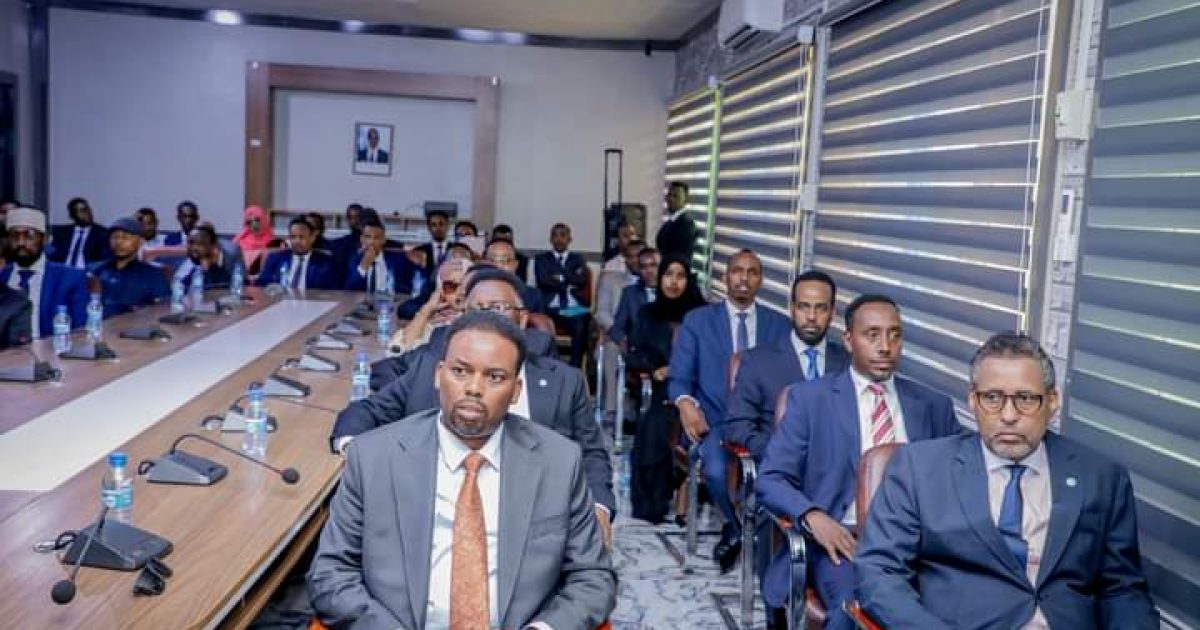 Danjire Axmed Macallin Fiqi, Wasiirka Arrimaha Dibadda iyo Iskaashiga Caalamiga ah, oo uu Wehliyo Wasiiru-dowlaha Wasaaradda Cali Balcad, ayaa maanta si rasmi ah u soo gabagabeeyay tababarka diblomaasiyadda ee loogu talagalay Safiirada cusub iyo saraakiisha diblomaasiyadeed.