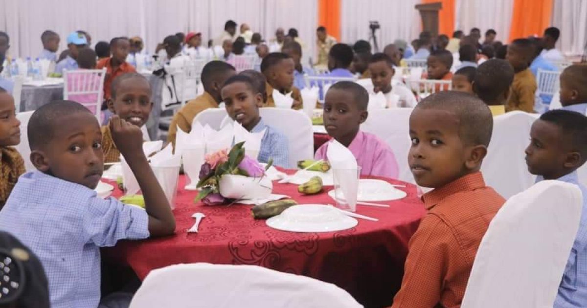 Caruurta oo waalidiintood ku shahiideen u qidmaynta qaranka, ayaa waxaa nolashooda ka faalaqaaday Ciidanka Boliiska Soomaaliyeed, iyada oo indhahooda laga dheehanayo farxada iyo rayn-taynta ka muuqata.