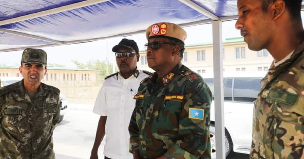 Taliyaha Ciidanka Xoogga dala Soomaaliyeed Sareeye/Gaas Ibraahim Sheekh Muxudiin Caddow, ayaa maanta kormeer Shaqo ku tegay Xerada tababarka Turkisom ee Muqdisho.