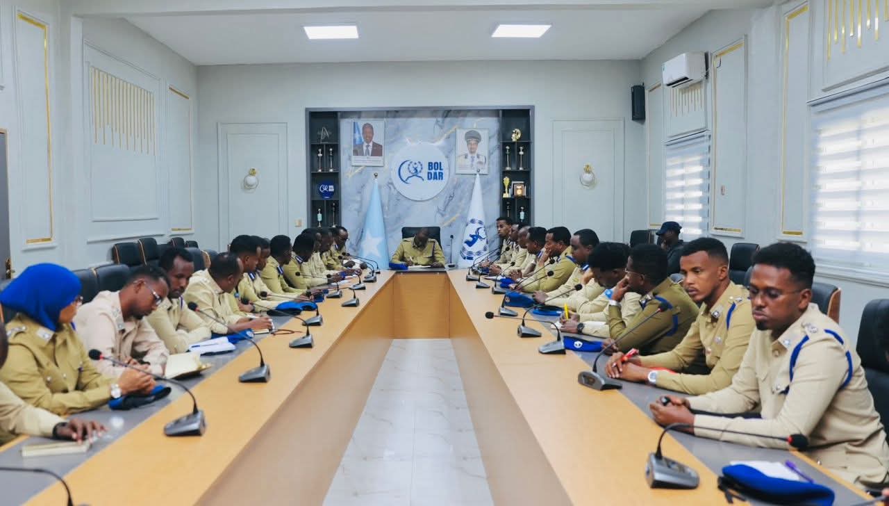 Taliyaha Qaybta Guud ee Booliska Gobolka Banaadir Gaashaanle Sare Mahdi Cumar Muumin, ayaa guddoomiyay shir muhiim ah oo ay isugu yimaadeen dhammaan saraakiisha Booliska Caasimadda.