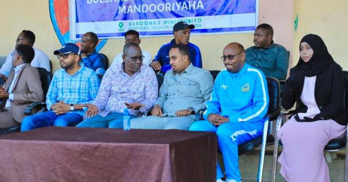 Guddoomiye Ku-xigeenka Arrimaha Bulshada iyo Wacyigelinta Gobolka Banaadir Mudane Cabdicasiis Cismaan Maxamed oo uu wehliyo Guddoomiyaha Xariirka Kubadda Cagta Soomaaliya Mudane Cali Cabdi Shiino ayaa Garoonka Kubadda Cagta Municipio ee Degmada Warta Nabadda ka daah-furay Tartanka isdhexgalka dhallinyarada iyo La-dagaallanka Maandooriyaha, oo ay ka qeyb-galayaan 16 kooxood oo ka tirsan Warta Nabadda Academy.