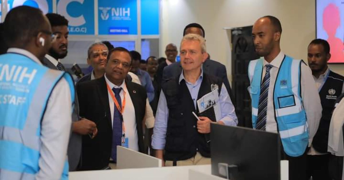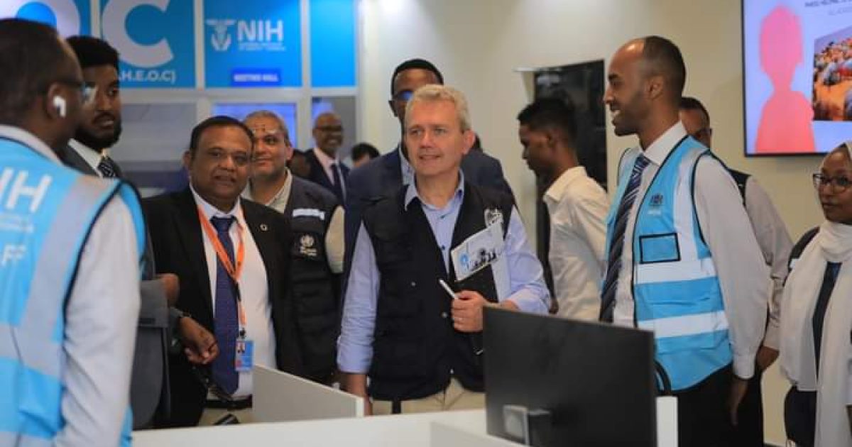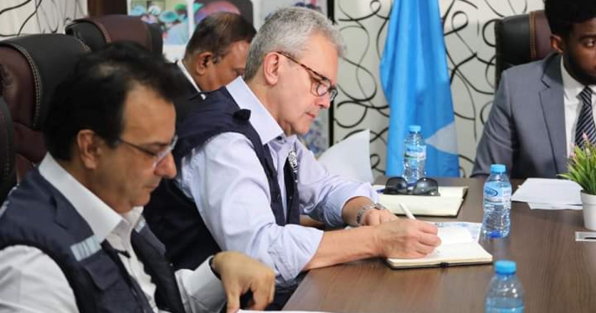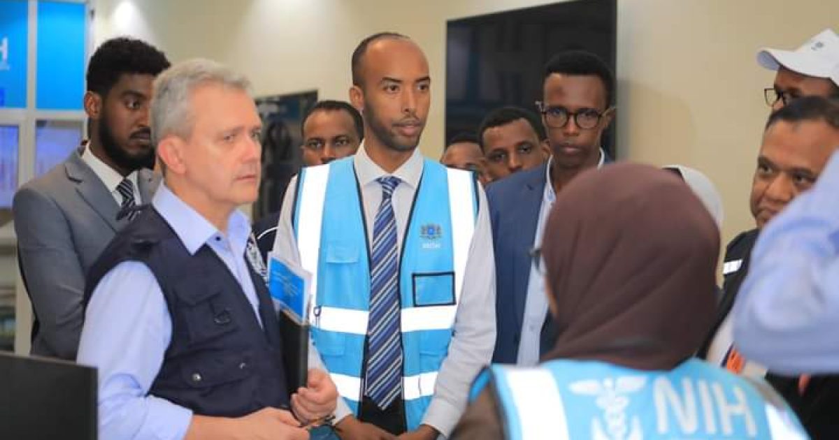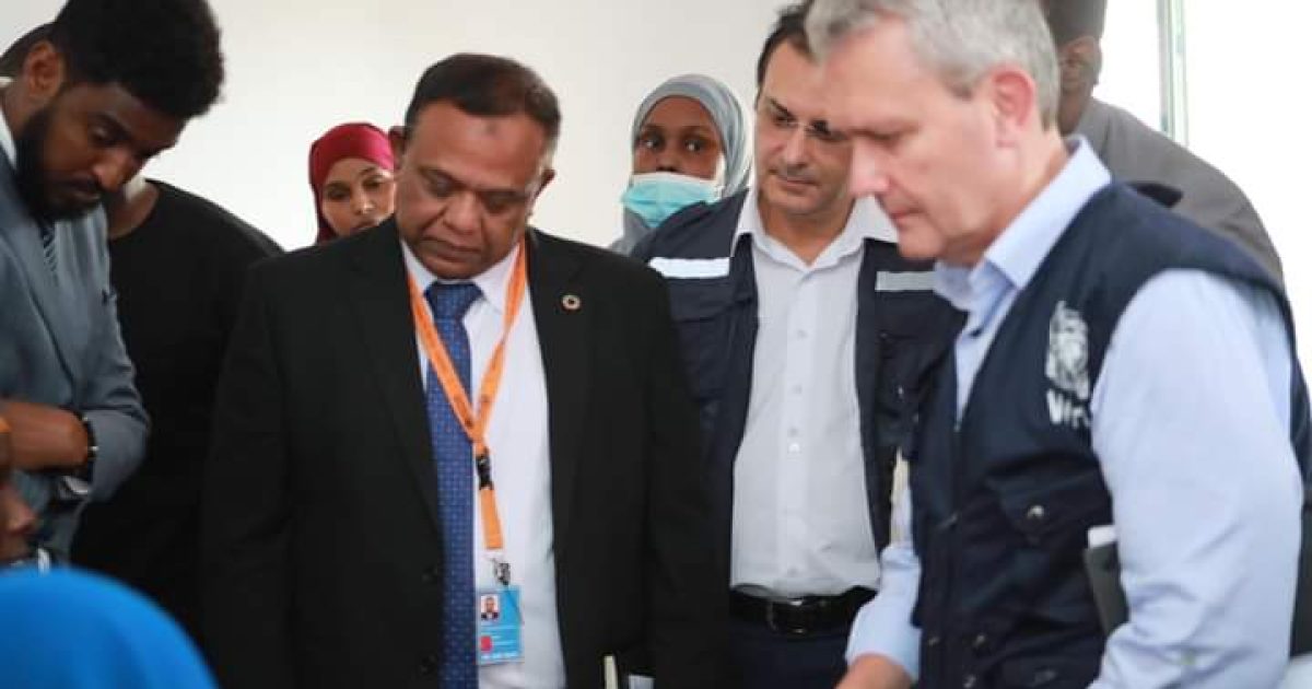 Ku-simaha Agaasimaha guud ee Wasaaradda Caafimaadka iyo daryeelka bulshada Xukuumadda Federaalka Soomaaliya ahna agaasimaha Waaxda Qalabka iyo Daawada Dr. Maxamed Maxamuud Caddow ayaa ku soo dhaweeyey Xarumaha ay booqdeen wafdiga uu hogaaminayey Agaasimaha Gurmadka deg degga ah ee Xafiis Goboleedka Hay’adda Caafimaadka Adduunk (WHO) Dr. Richard Brenann iyo Madaxa Hay’adda Caafimaadka Aduunka xafiiska Soomaaliya.