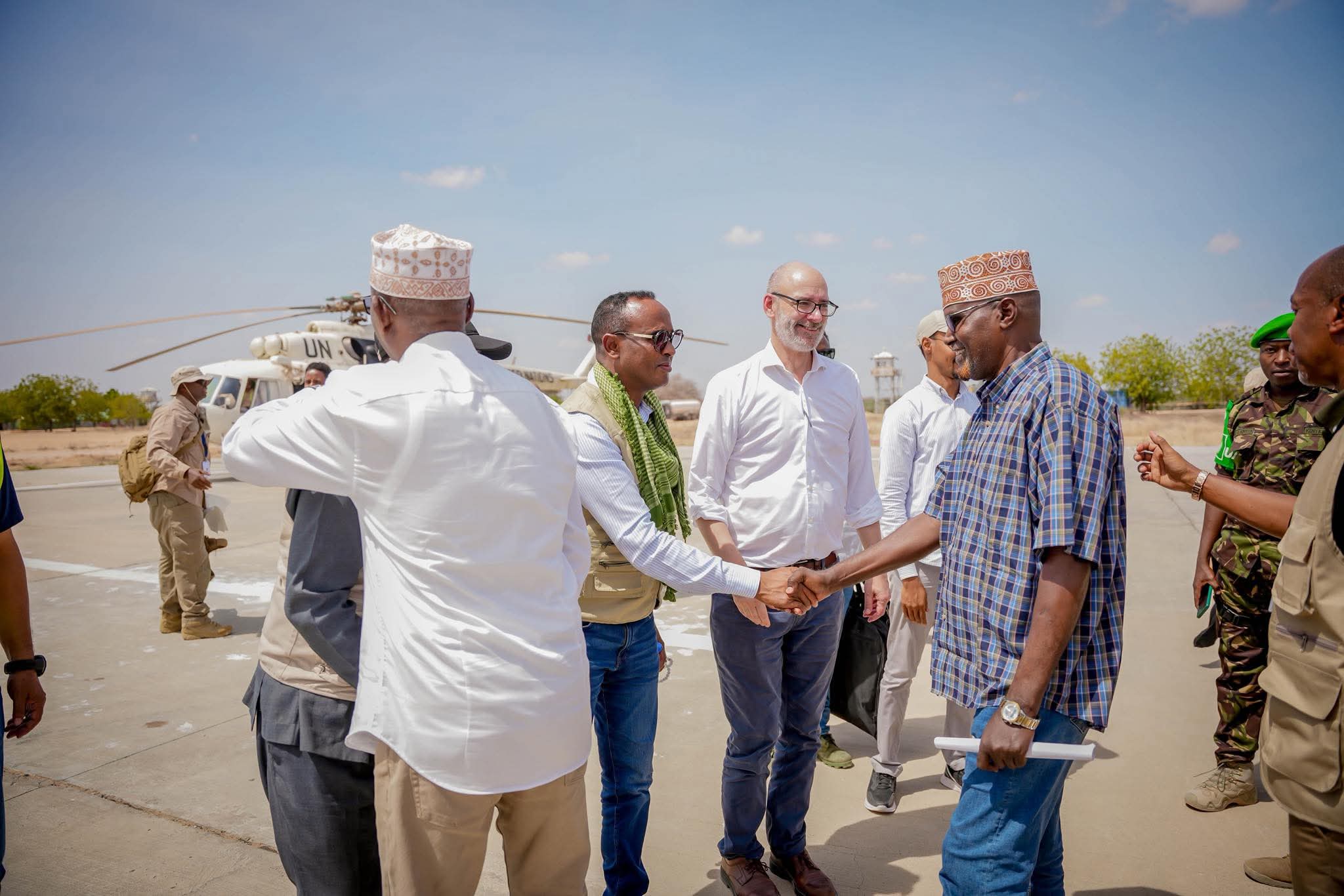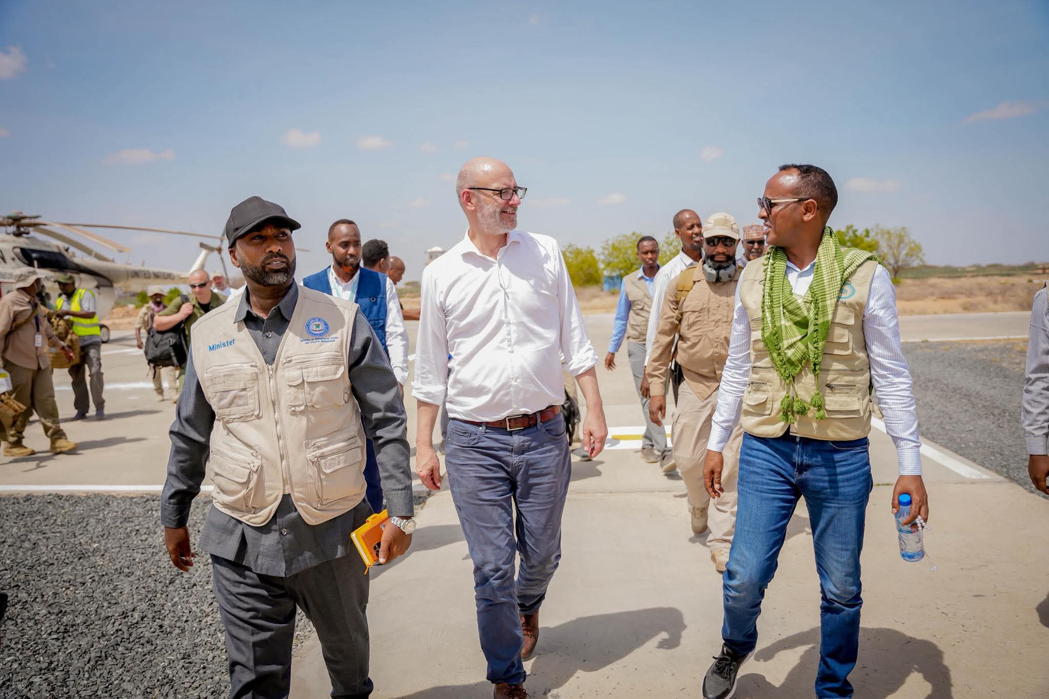 Wafdi ay hoggaaminayaan Guddoomiyaha Hay’adda Maareynta Musiibooyinka Qaranka Soomaaliyeed (SoDMA), Mudane Maxamuud Macalin Cabdulle, iyo Ku-xigeenka Ergayga Gaarka ah ee Qaramada Midoobay u qaabilsan Soomaaliya, ahna Isku-duwaha Arrimaha Bani’aadannimada, Mr. George Conway, ayaa maanta gaaray magaalada Dhoobley ee Gobolka Jubada Hoose.