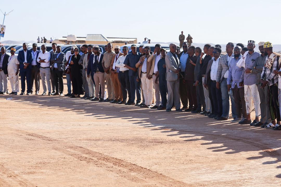 Wefdiga guddoomiyaha, oo ay ka mid ahaayeen Wasiirrada Xukuumadda Federaalka, sida Wasiirka Amniga, Wasiirka Tamarta iyo Biyaha, Taliyaha Ciidanka Booliska Soomaaliyeed, Senatorro, Saraakiil, iyo masuuliyiin kale, ayaa markii ay ka degeen Garoonka Diyaaradaha ee Laascaanood waxaa si diirran ugu soo dhoweeyay Guddoomiyaha Golaha Wakiillada Dowlad-Goboleedka Waqooyi Bari, Mudane Dr. Aadan Cabdullaahi Aw-xasan, xubno ka tirsan labada gole ee dowladda, iyo qeybaha kala duwan ee bulshada.