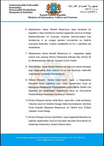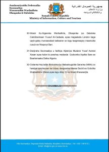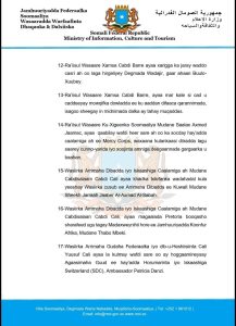 Dowladda Federaalka Soomaaliya Muqdisho, Sabti, 7-da February, 2026