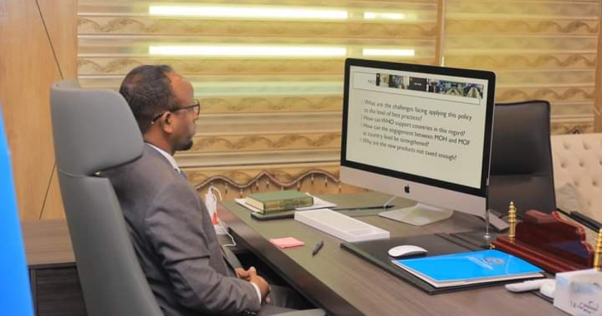 Wasiirka Wasaaradda Caafimaadka iyo daryeelka bulshada Xukuumadda Federaalka Soomaaliya Dr Cali Xaaji Aadan ayaa hadal jeedin ka sameeyey shir heer sare ah oo u qabsoomay habka fogaan-aragga ah kaas oo looga hadlayay canshuur ku kordhinta Tubaakada iyo Nikotiinka si loo xakameeyo.