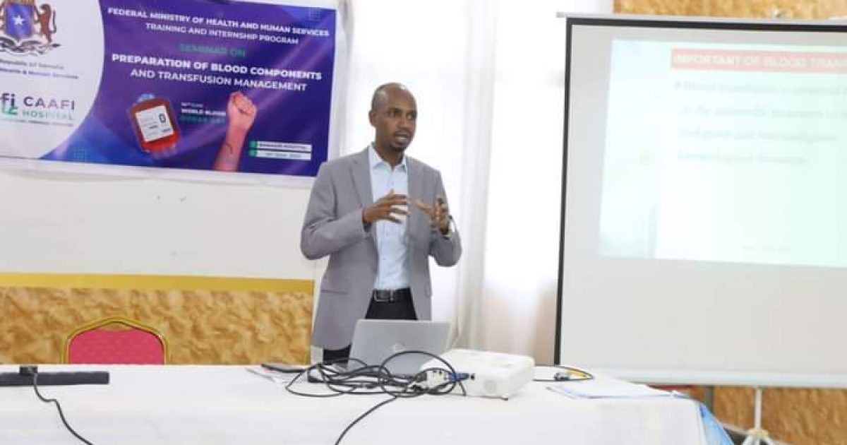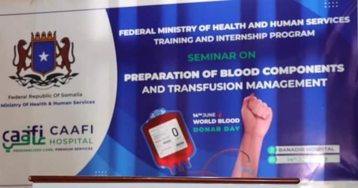 Wasaaradda Caafimaadka iyo daryeelka bulshada qeybta Tababarada (Internship and Training program) ayaa maanta Isbitaalka Banaadir ku qabatay siminaar ku saabsan diyaarinta iyo maareynta qeybaha Dhiiga.