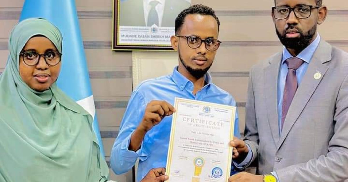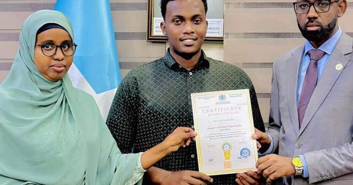 Wasaaradda Dhalinyarada iyo Ciyaaraha Xukuumaadda Soomaaliya,ayaa Shahaadada Diiwaangelinta Guddoonsiisay Ururrada dhallinyarada ee soo buuxiyey habraaca diiwaangelinta ururrada Dhallinyarada Soomaaliyeed.