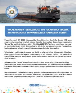 Wasaaradda Dekedaha iyo Gaadiidka Badda ee Xukuumadda Federaalka Soomaaliya (XFS) ayaa maanta si rasmi ah u diiwaangelisay markab sita calanka Soomaaliya, kaas oo lagu magacaabo “Guney”, sumadda tirsigiisuna tahay IMO 8230417.