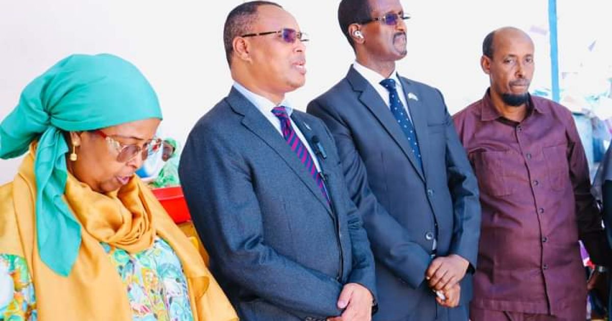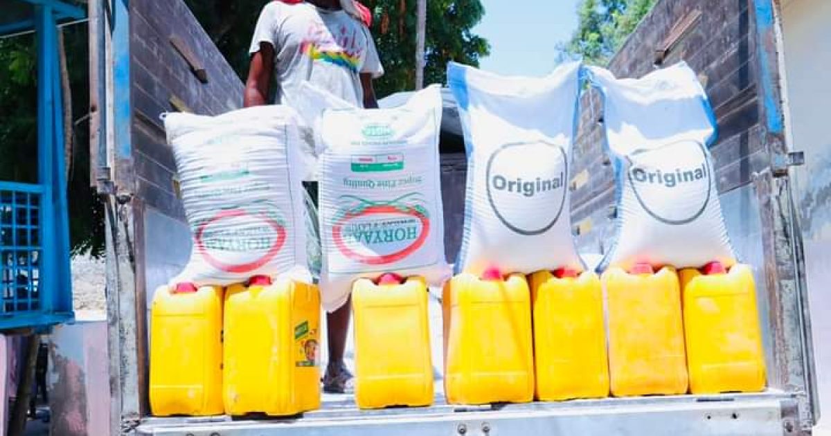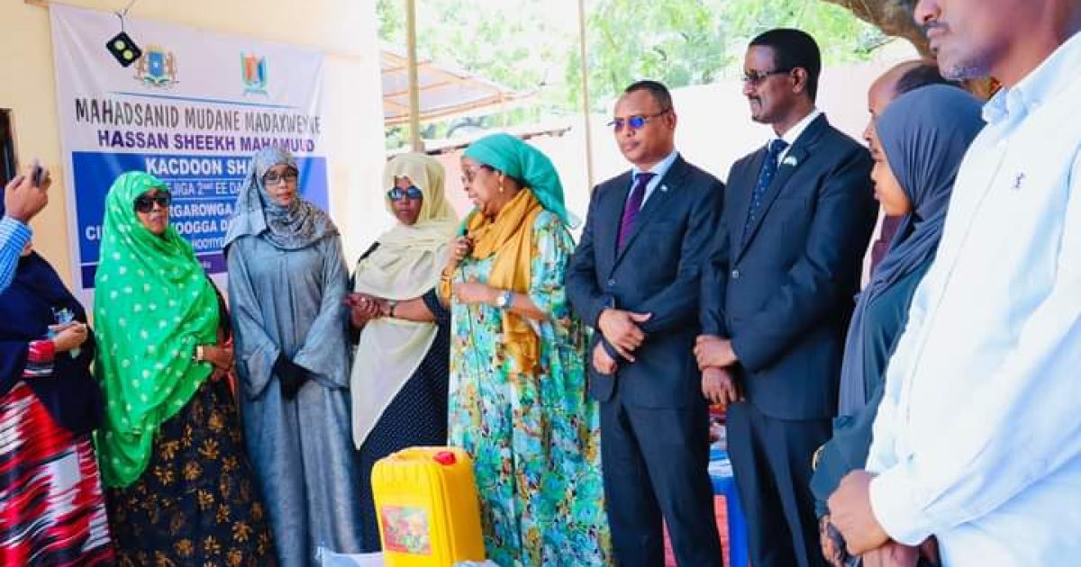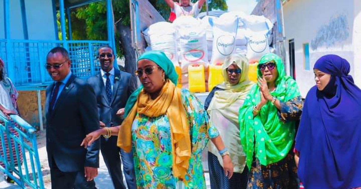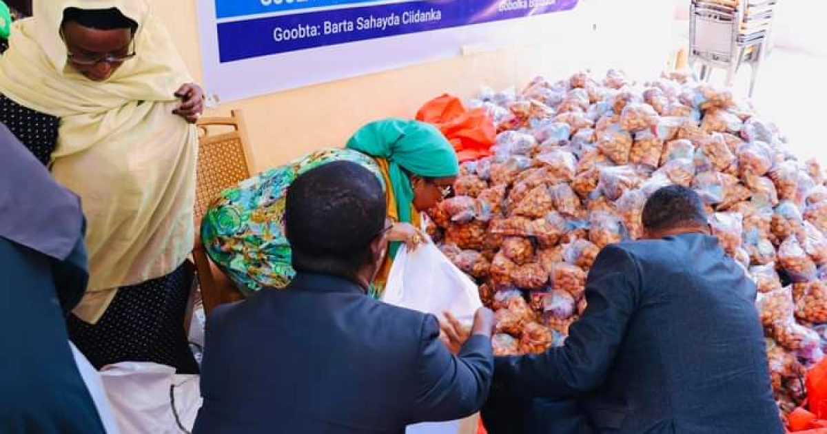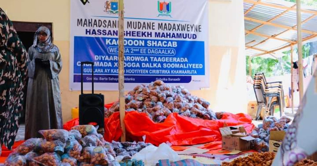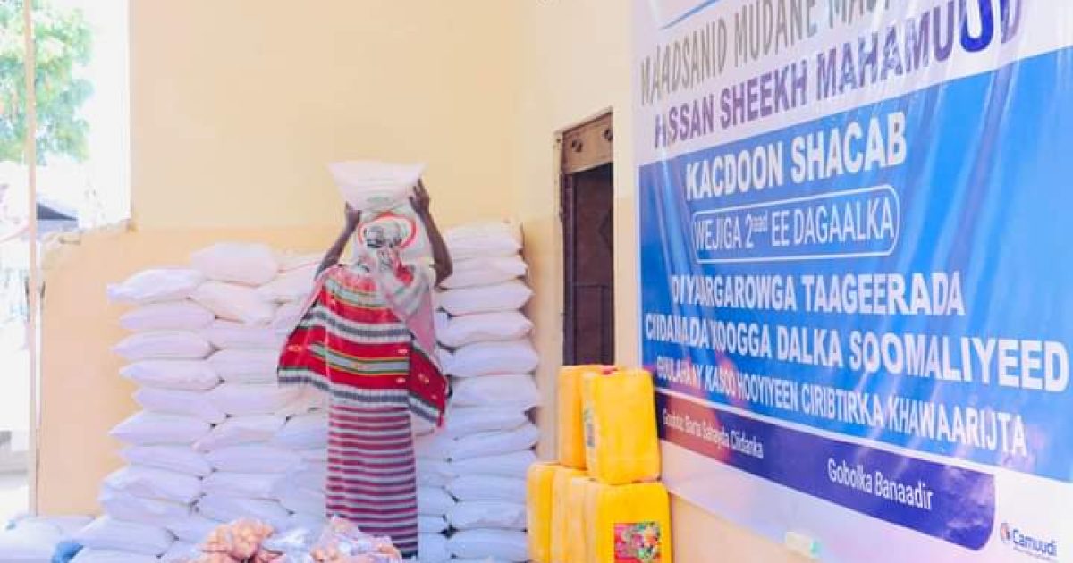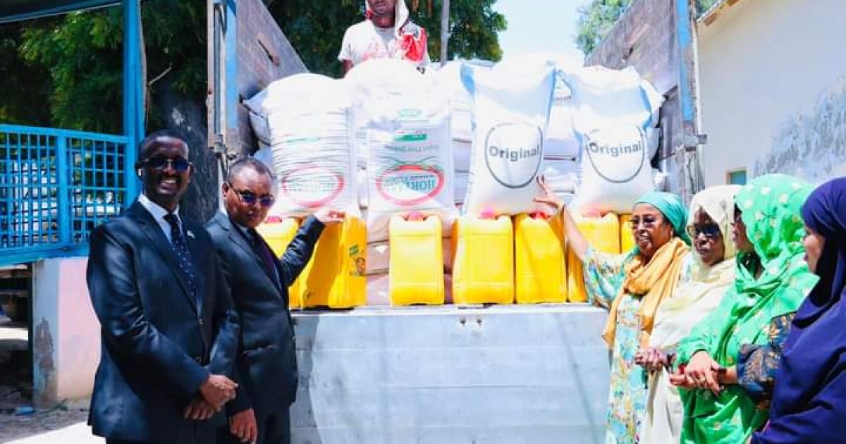 Wasiirka Ganacsiga iyo Warshadaha Xukuumadda Federaalka Soomaaliya Mudane Jibriil Cabdirashiid Xaaji Cabdi oo uu wehelinayo Wasiir ku-xigeenka Wasaaradda Mudane Cismaan Maxamed Cabdi (Daallo), ayaa deeqdan taakulada ah ee raashinkaa ku wareejiyey Wasiirka Wasaaradda Haweenka iyo Xuquuqal Insaanka Xukuumadda Federaalka Soomaaliya Marwo Khadiija Maxamed Diiriye iyo guddoomiyaha haweenka ee Gobalka Banaadir Marwo Jawaahir Maxamuud Jaamac oo mas’uul ka ah goobtan raashinka looggu diyaarinayo ciidamada ku jira halganka.