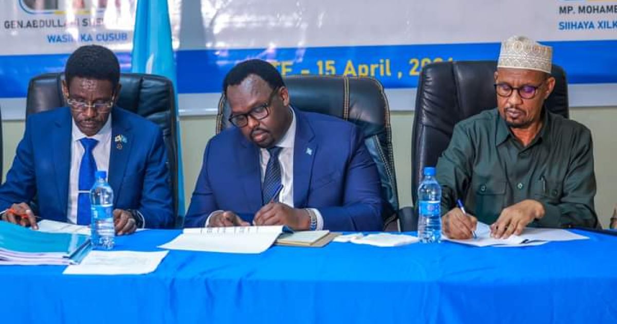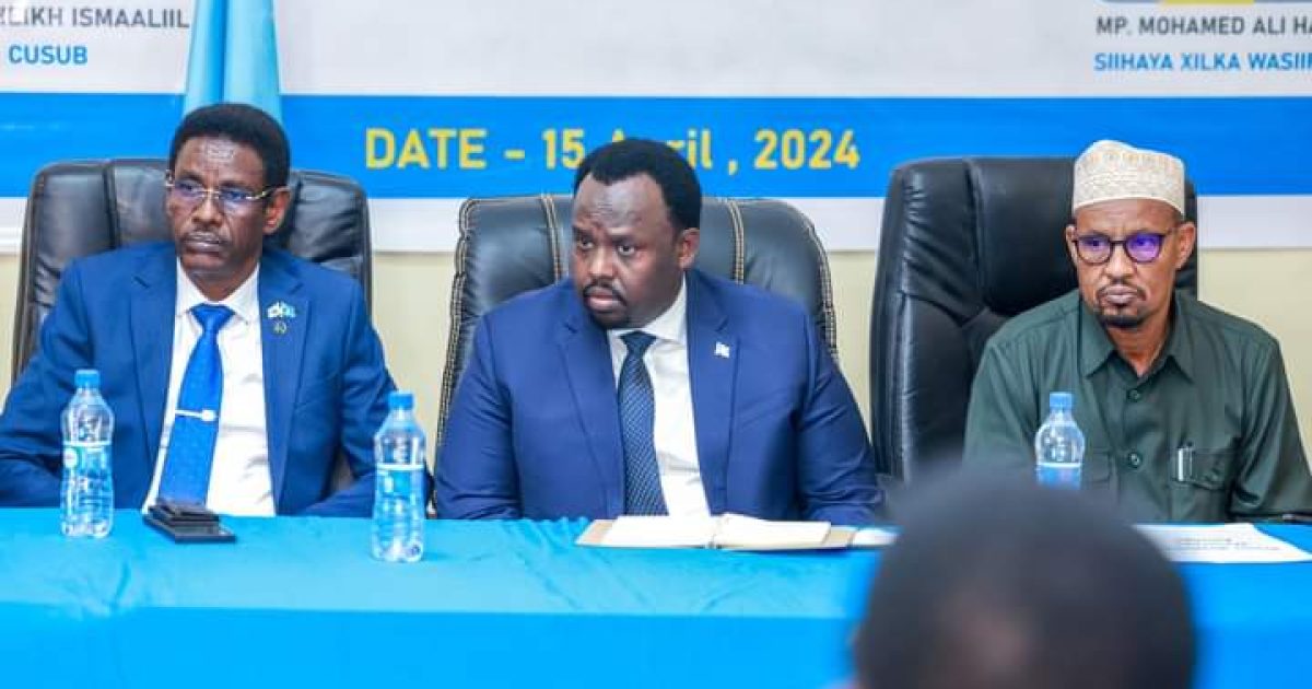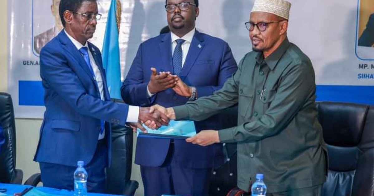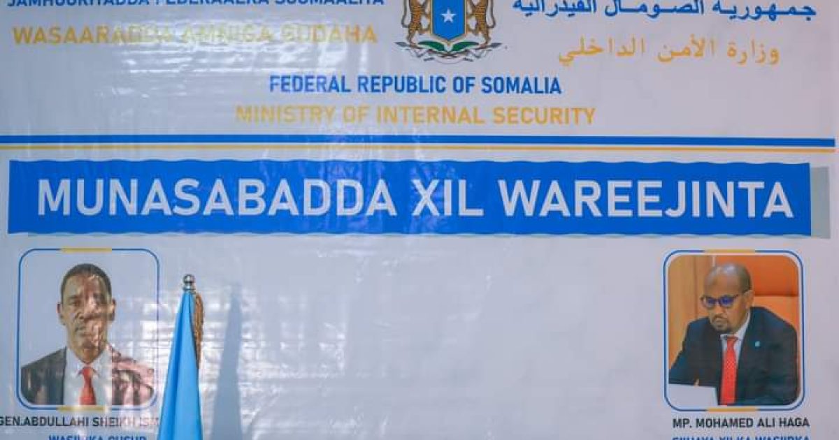 Ra’iisul Wasaare ku-xigeenka ahna Ku-simaha Ra’iisul Wasaaraha XJFS Mudane Saalax Jaamac, ayaa xilalka u kula wareejiyey Wasiirka cusub ee Wasaaradda Amniga Gudaha XFS, Mudane Cabdullaahi Sheekh Ismaaciil – Fartaag iyo ku-simihii Wasaaradda Amniga Gudaha Mudane Maxamed Cali (Xagaa).