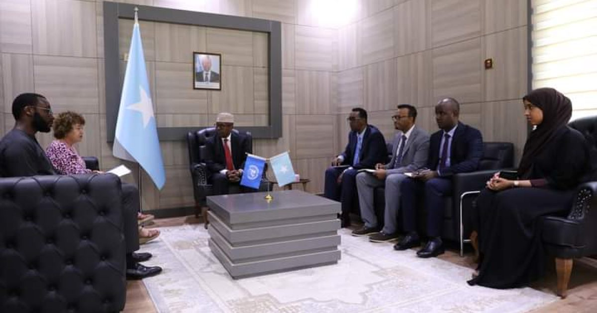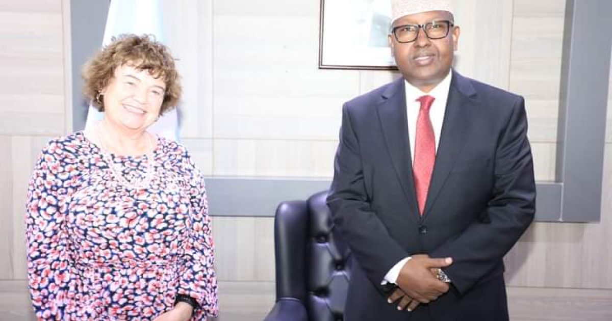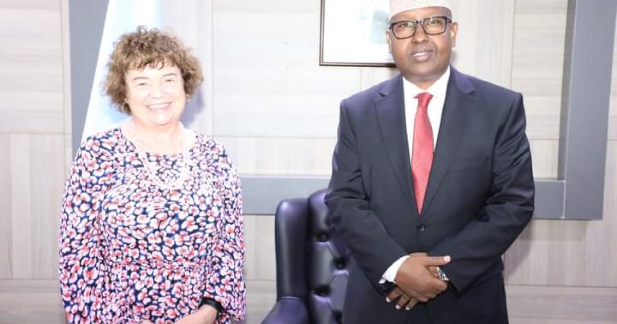 Wasiirka Arrimaha Dibadda iyo Iskaashiga Caalamiga, Mudane Danjire Axmed Macallin Fiqi, ayaa maanta oo Arbaco ah xafiiskiisa Wasaaradda ee Caasimadda Muqdisho ku qaabilay, Wakiilka Xoghayaha Guud ee Qaramada Midoobey u qaabilsan Arrimaha Soomaaliya (SRSG) ahna Madaxa Howlgalka Kaalmaynta Qaramada Midoobay ee Soomaaliya (UNSOM), Catriona Laing, oo uu kala hadlay dhowr arrimood oo ay ku jirto siyaasadda iyo amniga ee ah kuwa lagama maarmaanka u ah horumarka qaranka.