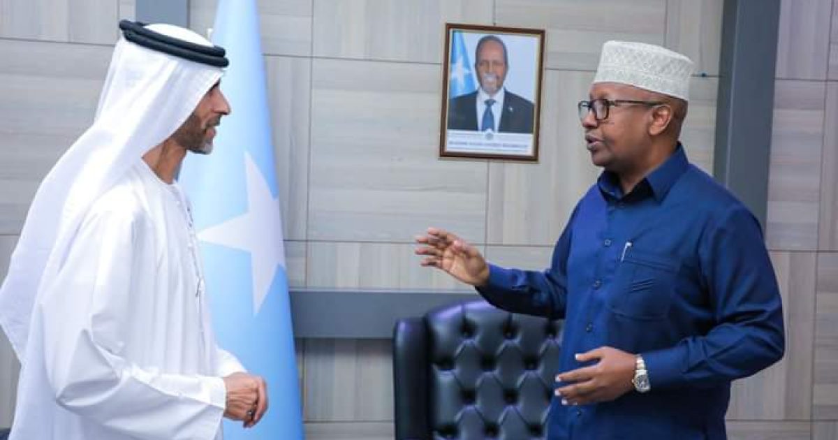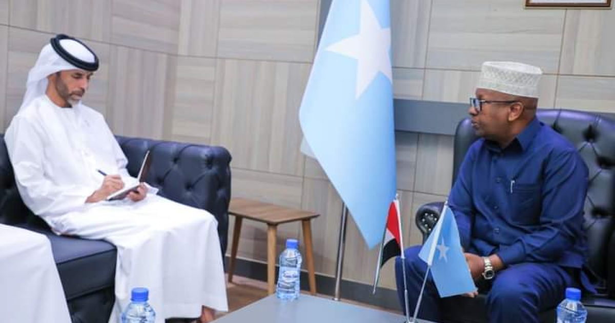 Wasiirka Arrimaha Dibadda iyo Iskaashiga Caalamiga, Mudane Danjire Axmed Macallin Fiqi, ayaa maanta oo Arbaco ah ku qaabilay xafiiskiisa Wasaaradda ee Caasimadda Muqdisho, Safiirka Dowladda Isutagga Imaaraatka Carabta, Ahmad Juma Al Rumaithi, oo uu kala hadlay siyaabaha lagu xoojin karo xiriirka labo geesoodka iyo iskaashiga u dhexeeya labada dal ee walaalaha ah.