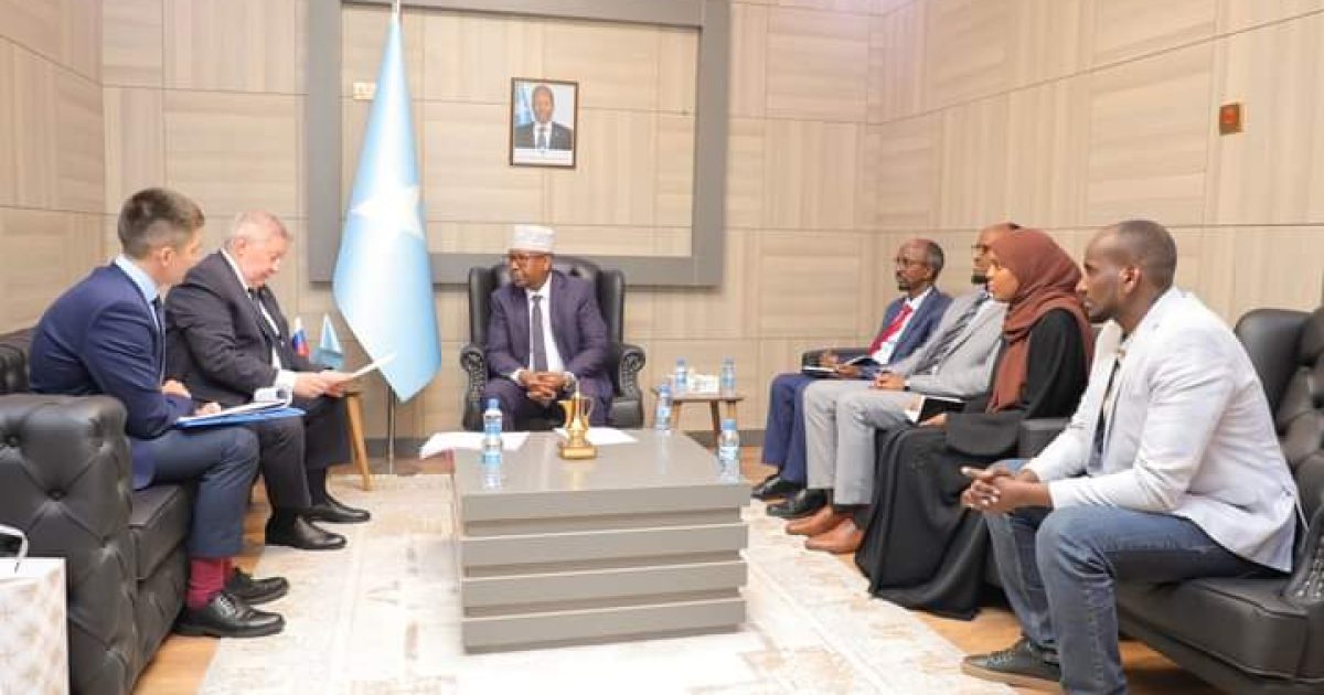 Wasiirka Arrimaha Dibadda iyo Iskaashiga Caalamiga, Mudane Danjire Axmed Macallin Fiqi Axmed, ayaa maanta oo Talaado ah, ku qaabilay xafiiskiisa Wasaaradda ee Caasimadda Muqdisho, Safiirka Ruushka u qaabilsan Jamhuuriyadda Federaalka Soomaaliya, Danjire Mikhail Golovanov, oo uu kala hadlay dhowr arrimood oo khuseeya amniga, bulshada iyo bani’aadantinimada.