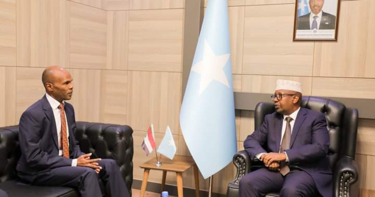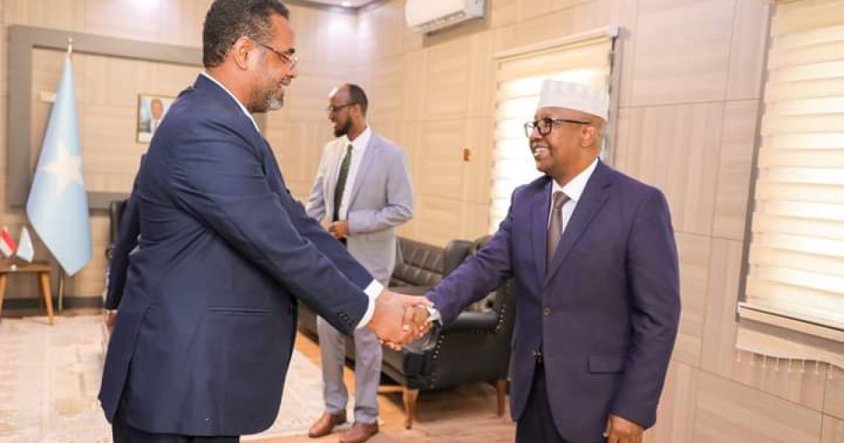 Wasiirka Arrimaha Dibadda iyo Iskaashiga Caalamiga, Mudane Danjire Axmed Macallin Fiqi Axmed, ayaa maanta oo Axad ah ku qaabilay xafiiskiisa Wasaaradda ee Caasimadda Muqdisho, Siihayaha Safaaradda Jamhuuriyadda Suudaan ee Jamhuuriyadda Federaalka Soomaaliya, Ammar Ahmed Abikar, oo uu kala hadlay xiriirka taariikhiga ah ee salka adag ee labada dal ee walaalaha ah u dhexeeya iyo kor-u-qaadista is-fahan is-dhaafsiga.