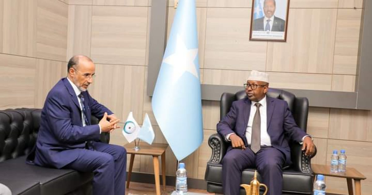 Wasiirka Arrimaha Dibadda iyo Iskaashiga Caalamiga, Mudane Danjire Axmed Macallin Fiqi, ayaa maanta oo Axad ah ku qaabilay xafiiskiisa Wasaaradda ee Caasimadda Muqdisho, Agaasimaha guud ee xafiis goboleedka Ururka Iskaashiga Islaamka (OIC) ee Soomaaliya, Danjire Mohamed Bamba M. Boba, isaga oo kala hadlay siyaabaha lagu xoojin karo iskaashiga iyo isku-duwidda.