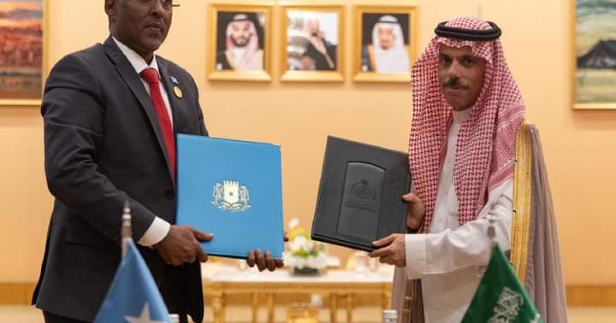 Wasiirka Arrimaha Dibadda Xukuumadda Federaalka Soomaaliya Mudane Abshir Cumar Haruuse ayaa Heshiis iskaashi ah la saxiixday dhigiisa Boqortooyada Sacuudiga Mudane H.E Faisal bin Farhan Al Saud.