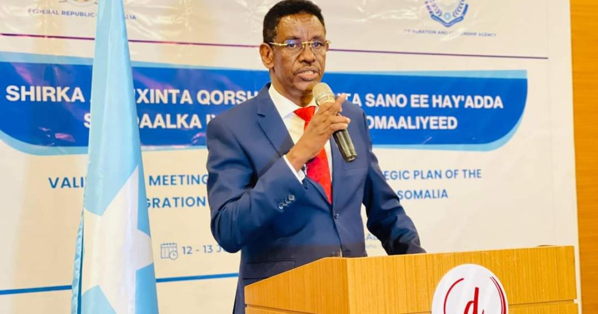 Wasiirka Wasaaradda Amniga Gudaha ee Xukuumadda Jamhuuriyadda Federaalka Soomaaliya, Mudane Cabdullaahi Sheekh Ismaaciil (Fartaag),ayaa maanta furay shirka ansixinta qorshaha shanta sano ee hay’adda socdaalka iyo jinsiyadda Soomaaliya oo maanta ka furmay magaalada Muqdisho.