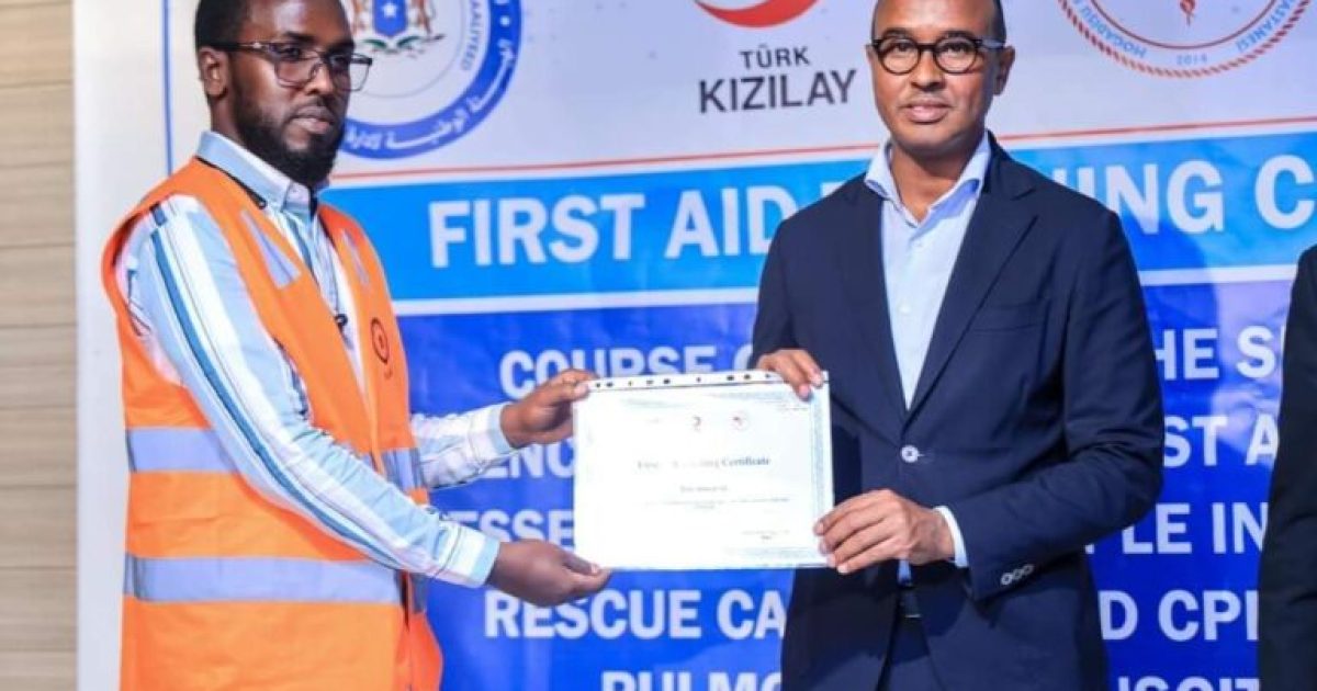 Wasiirka Arrimaha Gudaha Cali Yuusuf Cali iyo Guddoomiyaha SoDMA, Maxamuud Macallin ayaa kaalintooda tababarkaan uga mahad-celiyay Dowladda Turkiga, Safaaradda, Hay’adda KIZILAY, Jaamacadda Cilmiga Caafimaadka ee Isbitaalka Erdogan, iyaga oo kula dardaarmay shaqaalahan inay aqoontaan si hufan bulshada Soomaaliyeed ugu adeegaan.