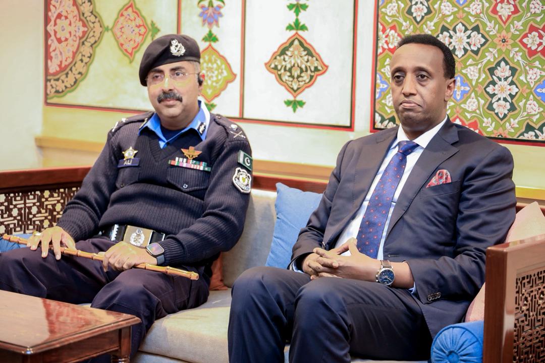Wafdiga Wasiirka Arrimaha Gudaha XFS ayaa caasimadda Islamabad waxaa si diirran ugu soo dhaweeyay mas’uuliyiin ka tirsan Dowladda Pakistan iyo Safiirka Soomaaliya ee Pakistan, Danjire Sheekh Nuur Maxamed Xasan.