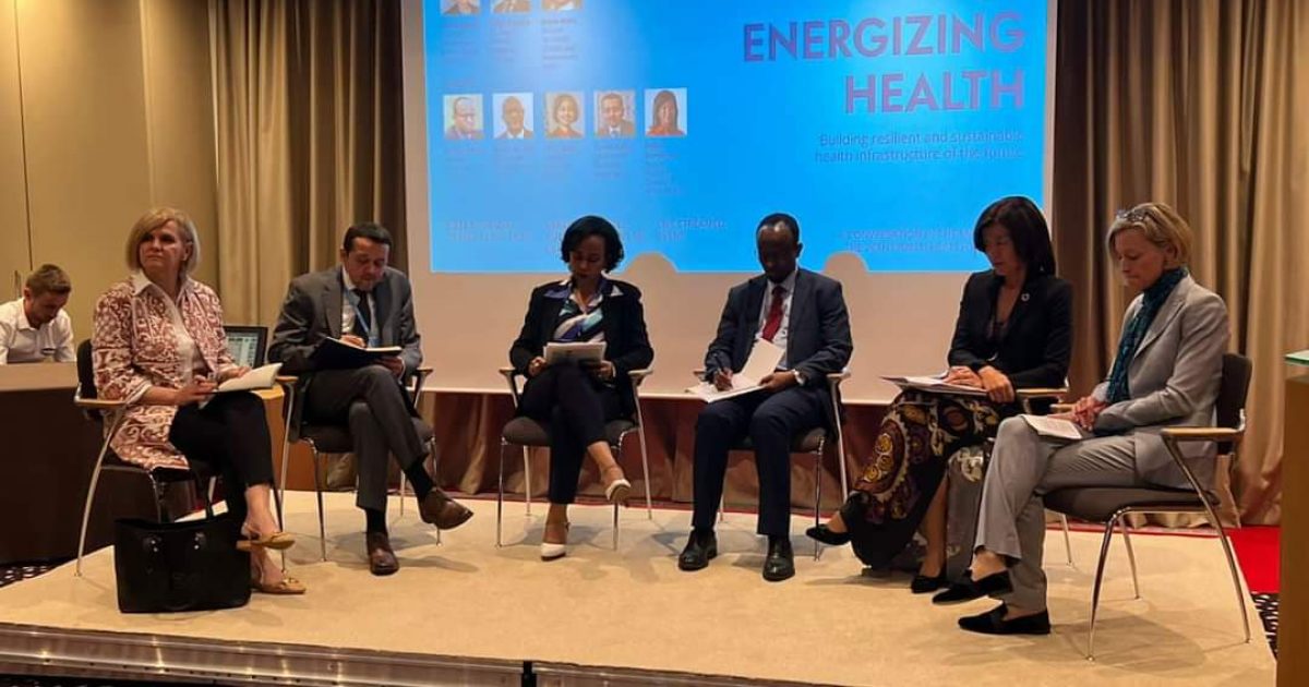 Wasiirka Wasaaradda Caafimaadka ee Soomaaliya Dr. Ali Haji Adam,ayaa shirka ka sheegay in Dawlada Soomaaliya ay ka go’antahay in la horumariyo nidaam Caafimaadka oo kor u qaada bixinta adeeg Caafimaad oo aan saamayn xun ku reebin shacabka iyo deegaanada Soomaaliyeed, waxa uuna sidoo kale Wasiirku sheegay in ay ka go’antahay Wasaaradda Caafimaadka in xarrumaha Caafimaadka dalka lawada gaadhsiiyo korontada laga dhalliyo tamarka qoraxda.