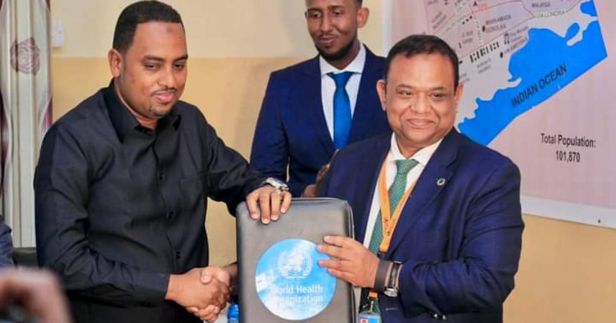 Wasiirka Wasaaradda Caafimaadka iyo daryeelka bulshada Xukuumadda Federaalka Soomaaliya Dr Cali Xaaji Aadan ayaa maanta mid ka mid ah Gawaaridii Hey’adda WHO ugu deeqday Wasaaradda Caafimaadka ku wareejiyey Maamulka Gobolka Banaadir.
