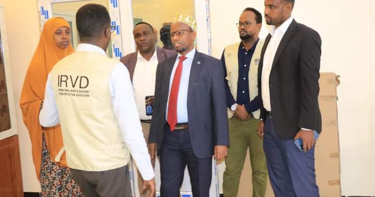 Wakiilka Hey’adda IRVD Soomaaliya Dr. Maxamed Xuseen Muumin iyo Agaasimaha xaruunta Keliya dhaqista ee Banadir Dr. Axmed Xuseen Nuur ayaa ku soo dhaweeyey xarunta Wasiirka Caafimaadka, iyagoo siiyey warbixin ku saabsan adeegyada ay xarunta bixiso, waxaa sido kale so dhoweynta qeyb ka ahaa madaxa Program-ka IRVD ee Soomaaliya Cumar Cabdulle Cismaan.