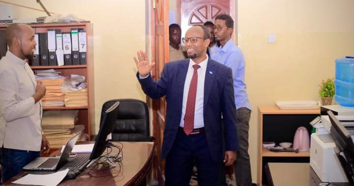Madaxa Shaybaarka Qaranka Dr Maxamuud Axmed ayaa ku soo dhaweeyey xarunta Shaybaarka Wasiirka, isagoo warbixin kooban ka siiyay Wasiirka howllaha Shaqo ee Shaybaarka, tallaabooyinkii ay qaadeen iyo caqabadaha yaryar ee ku hor gudban howllahooda shaqo si loo sii horumariyo isla markaana looga gudbo caqabadaha jira ee xalka deg degga ah u baahan.