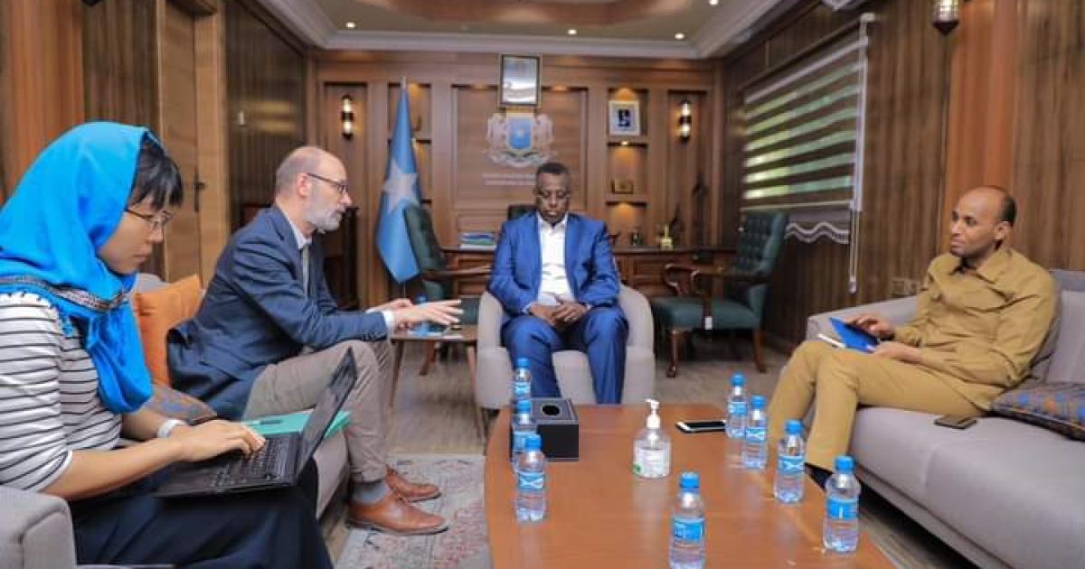 Wasiirka cadaaladda iyo arrimaha Dastuurka Xukuumadda Federaalka Soomaaliya, mudane Xasan Macallin Maxamuud ayaa maanta xafiiskiisa ku qaabilay Ku-xigeenka Ergeyga Gaarka ah ee Qaramada Midoobay ee Soomaaliya (UNSOM) ahna Iskuduwaha Arrimaha Gargaarka ee Soomaaliya, Mr. George Conway.