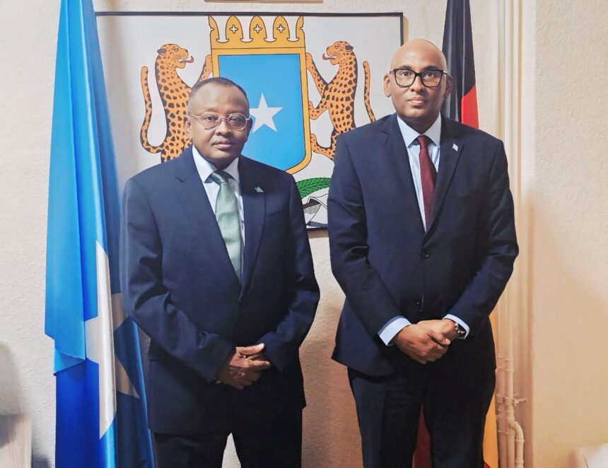 Wasiirka Wasaaradda Deegaanka iyo Isbeddelka Cimilada Soomaaliya, Sarreeye Guud Bashiir Maxamed Jaamac, ayaa booqasho rasmi ah ku tagay xarunta safaaradda Soomaaliya ee Jarmalka, halkaas oo uu ku soo dhoweeyey Danjire Cabdcasiis M. Maxamed.