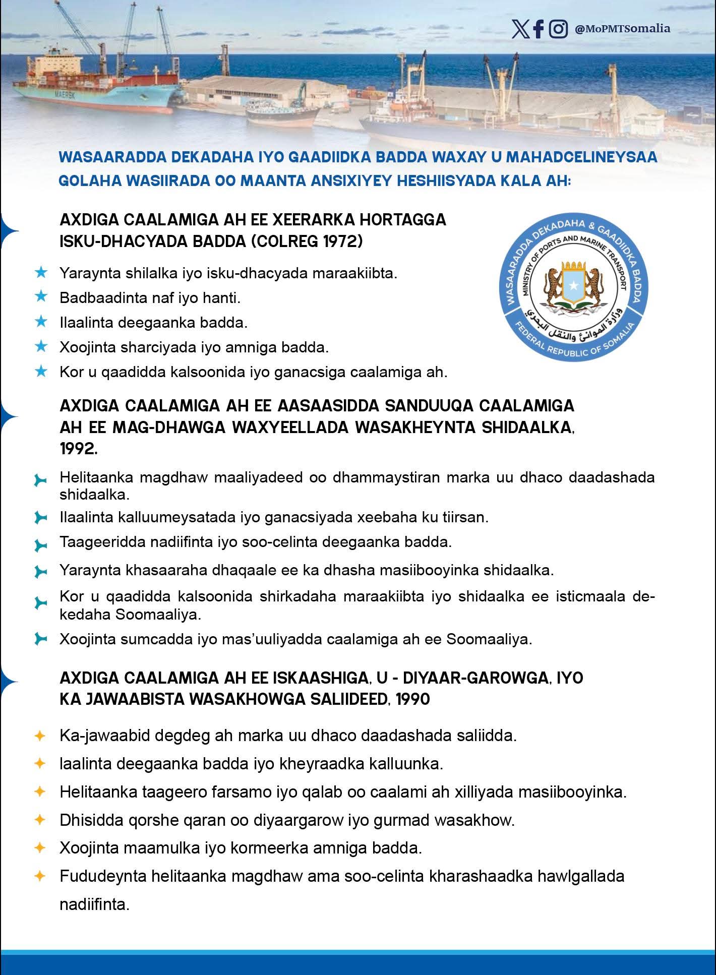 Meel-marinta axdiyadan waxay muujinaysaa dadaalka joogtada ah ee lagu xoojinayo badbaadada, ilaalinta deegaanka badda, iyo kor u qaadista sumcadda iyo kalsoonida Soomaaliya ee saaxadda caalamiga ah.