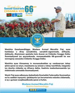 Wasiirka Gaashaandhigga oo Ciidanka Xoogga Dalka ugu hambalyeeyay sanad guuradoodii 66-aad