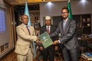 Wasiirka ayaa uga mahadceliyey Xoghayihii hore shaqadii iyo dadaalkii uu soo qabtay muddadii uu xilka hayey, isaga oo ku ammaanay sida hufan ee uu uga soo baxay waajibaadkiisa shaqo.